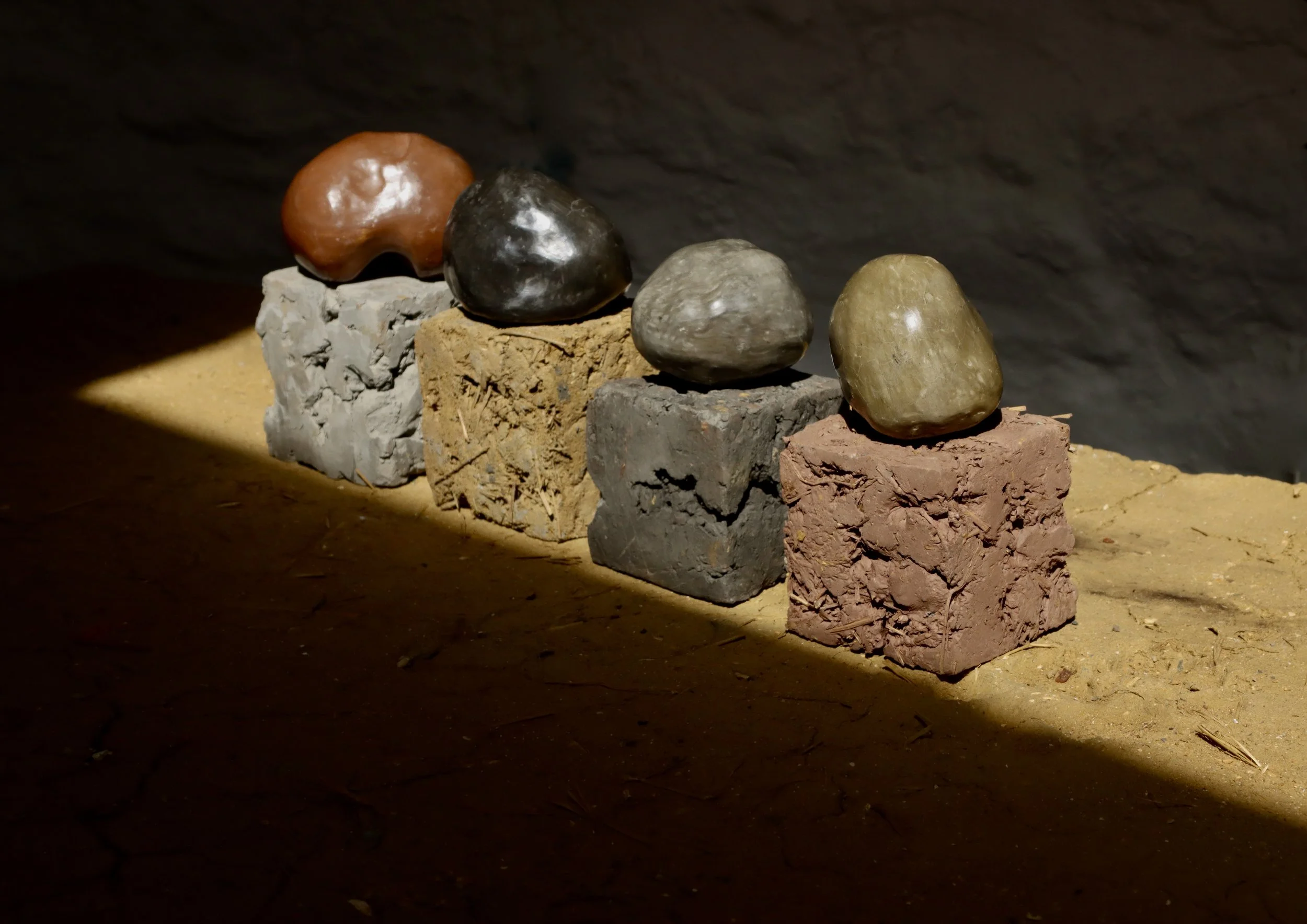 The Japanese practice of Dorodango—carefully forming earth into smooth spheres using only water and hands—also influenced the making. It introduced a methodical, meditative process to the research, where form emerges through repetition, attention, and care. These gestures form a bridge between the material and emotional qualities of working with clay and speak to the accessibility and universality of earth as a medium.