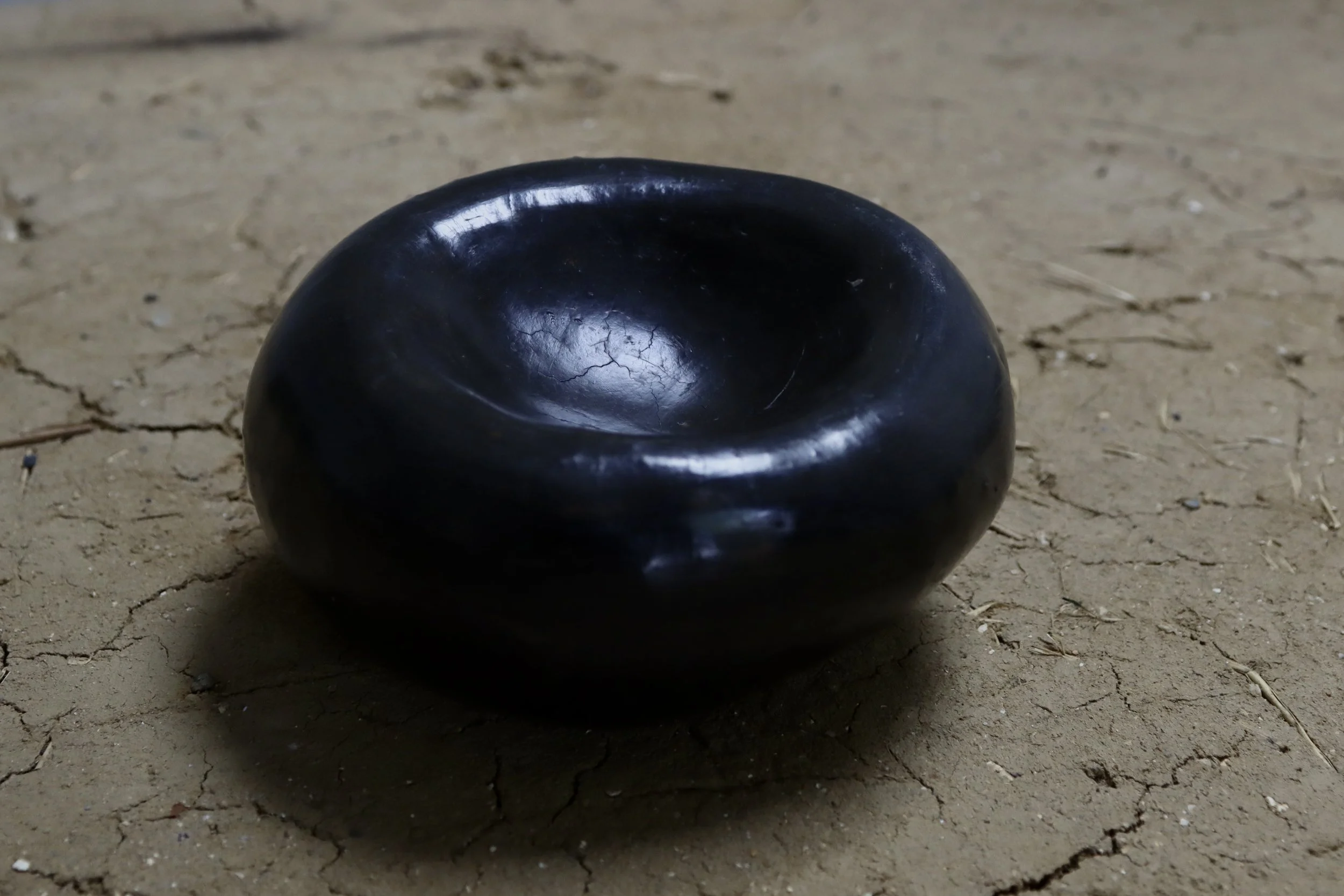 These ideas extend into the ceramic works, which prioritise hand-building, burnishing, and open firing techniques that reduce the need for industrial kilns.