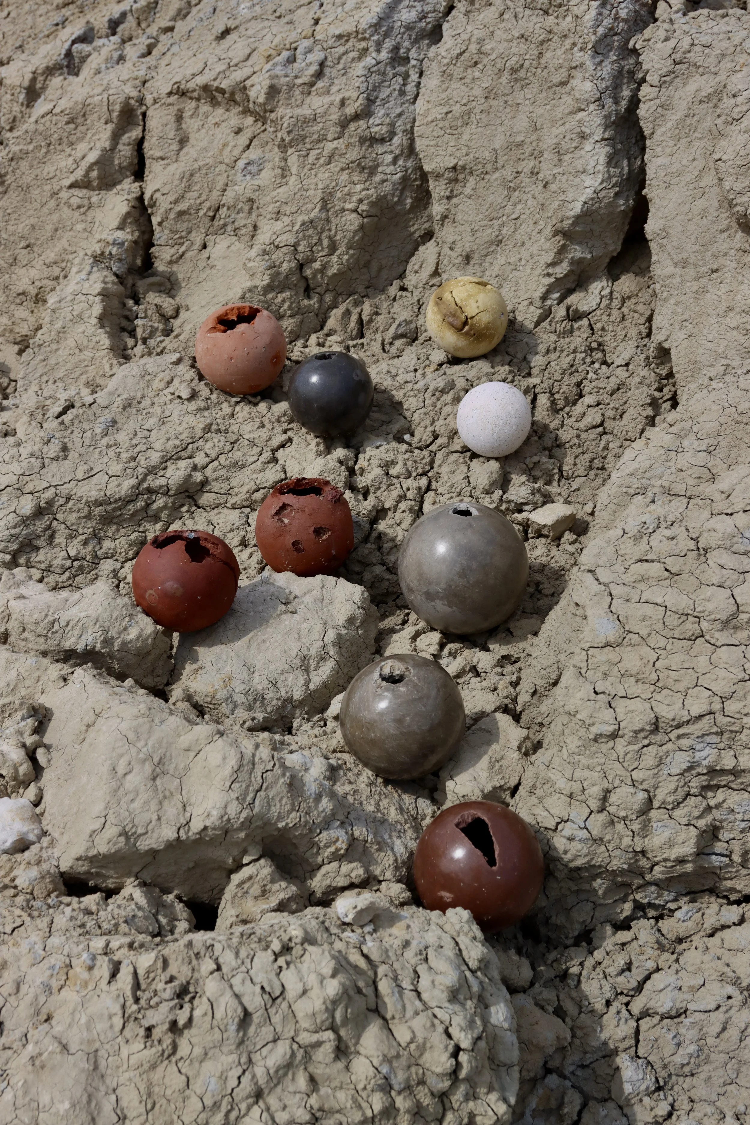 Placed in relation to one another, the spheres create a map of the landscape, charting the diversity of clays and their intimate connection to place. They speak not only to the histories embedded in the earth but also to the potential of clay to guide us toward more sustainable, contemporary ceramic practices. By working with natural, locally-sourced materials and low-impact processes, Earth Studies reflects on how traditional techniques might inform future models of making – ones rooted in care, reciprocity, and ecological awareness.