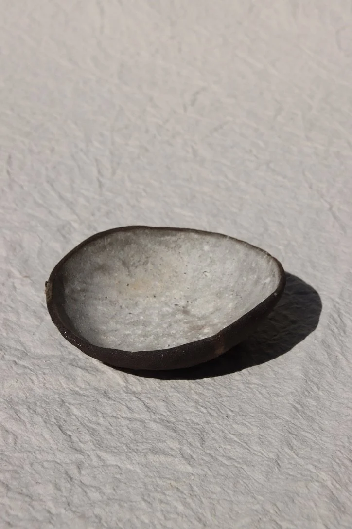Foraged clays and minerals, hand carved and burnished with locally foraged tools.