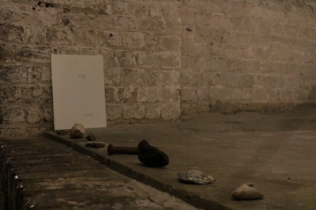 A five-day residency exploring found materials from the Thames foreshore and London clay, with installations, photographs, and texts responding to the Crypt’s subterranean space.